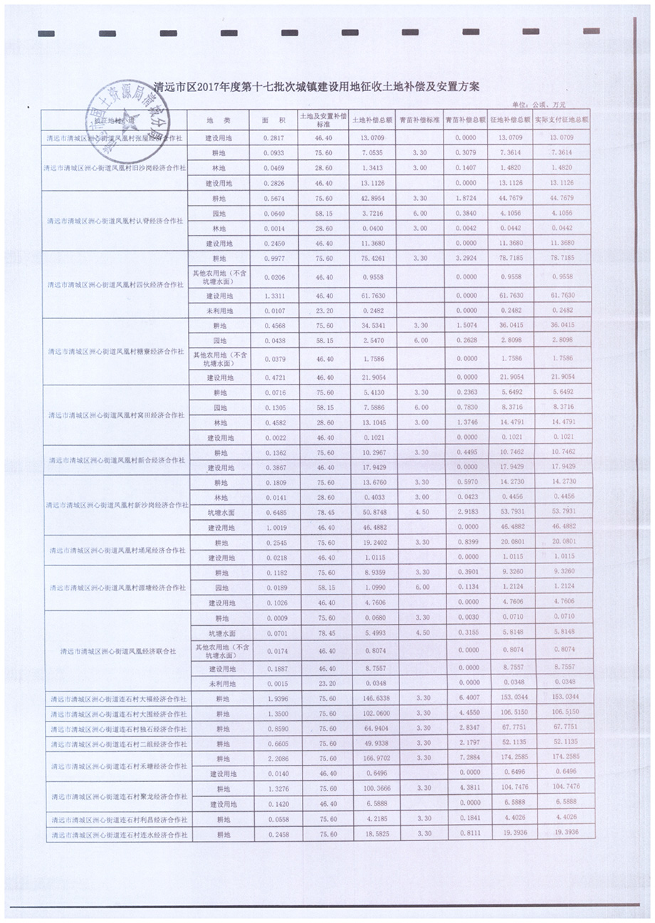 清遠(yuǎn)市區(qū)2017年度第十七批次城鎮(zhèn)建設(shè)用地征地補(bǔ)償安置方案