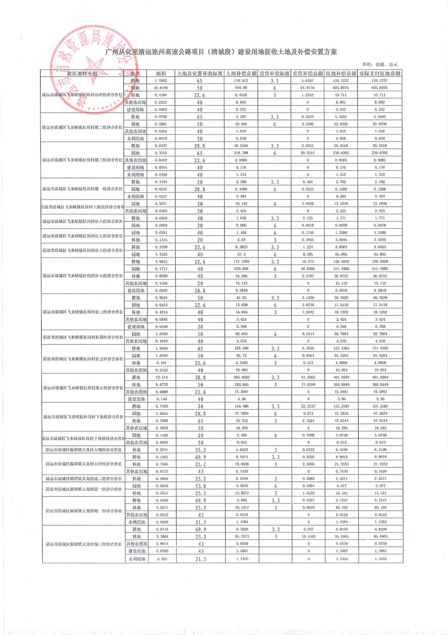 廣州從化至清遠連州高速公路項目(清城段)工程建設(shè)用地征地補償安置方案