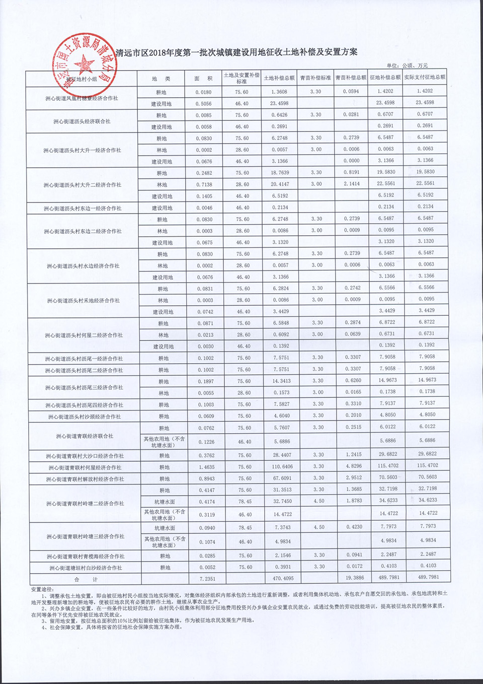 清遠(yuǎn)市區(qū)2018年度第一批次城鎮(zhèn)建設(shè)用地征地補(bǔ)償安置方案