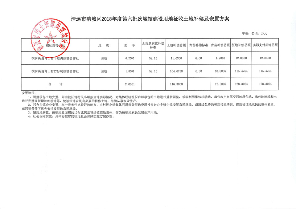 清遠(yuǎn)市清城區(qū)2018年度第六批次征地補(bǔ)償安置方案