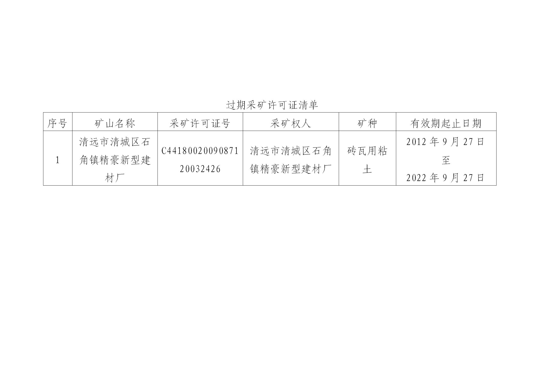 根據(jù)《中華人民共和國(guó)行政許可法》(2019年修正)第七十條、《礦產(chǎn)資源開采登記管理辦法》(國(guó)務(wù)院令第241號(hào))第七條和三十一條、《自然資源部關(guān)于進(jìn)一步完善礦產(chǎn)資源勘查開采登記管理的通知》(自然資規(guī)〔2023〕4號(hào))第十八條的規(guī)定,清遠(yuǎn)市清城區(qū)石角鎮(zhèn)精豪新型建材廠采礦許可證(證號(hào)為C4418002009087120032426)已過期無效,清遠(yuǎn)市自然資源局清城分局?jǐn)M對(duì)該采礦許可證予以注銷,現(xiàn)按規(guī)定進(jìn)行公示,公示期為30個(gè)工作日(2026年2月14日至2026年4月2日),公示期內(nèi)如有異議,請(qǐng)以書面形式向清遠(yuǎn)市自然資源局清城分局反饋。